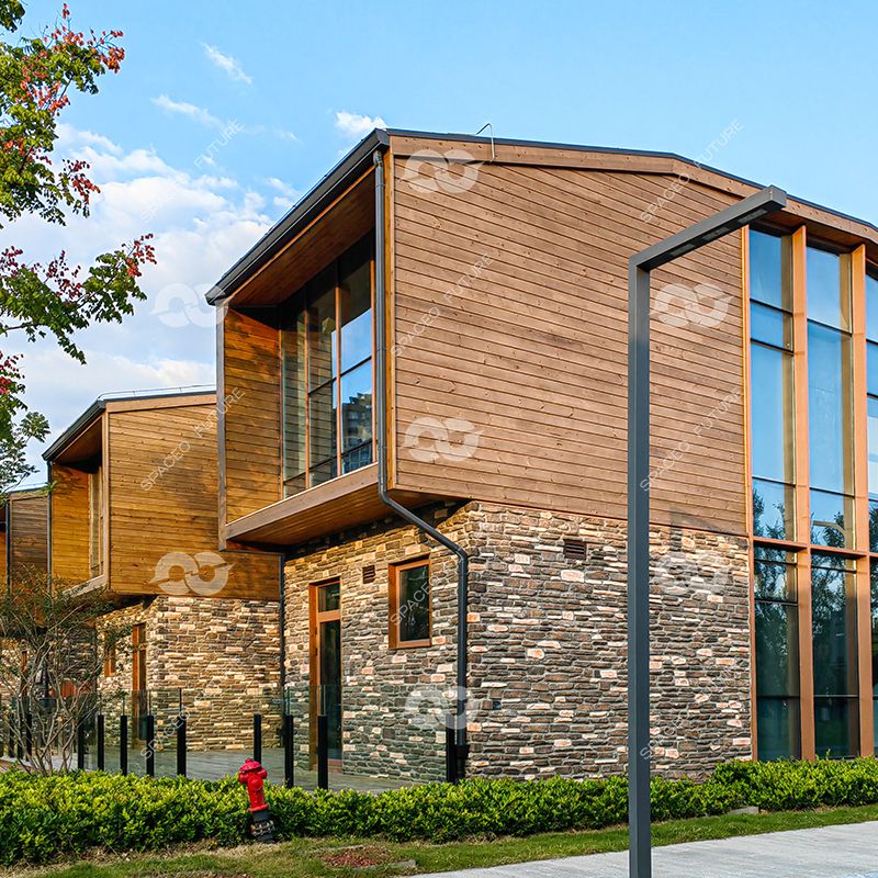 2. Ecological office area: Type B, 11 buildings, two-story building, sloping roof, total height 12.65m; Type C, 4 buildings, two-story building, sloping roof, total height 8.8m; Type D, 5 buildings, two-story building, sloping roof, total height 8.8m; Type E, 1 building, two-story building, sloping roof, total height 8.8m.
