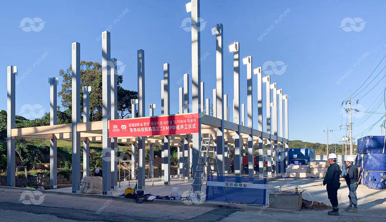 The module design is compatible with standard container specifications and is fixed by metal connecting frames. The transportation cycle from the Chinese production base to South Korea only takes about one week. The main structure was capped in 2 weeks, and the carbon emissions of the whole process were reduced by 80% compared with traditional concrete buildings.
