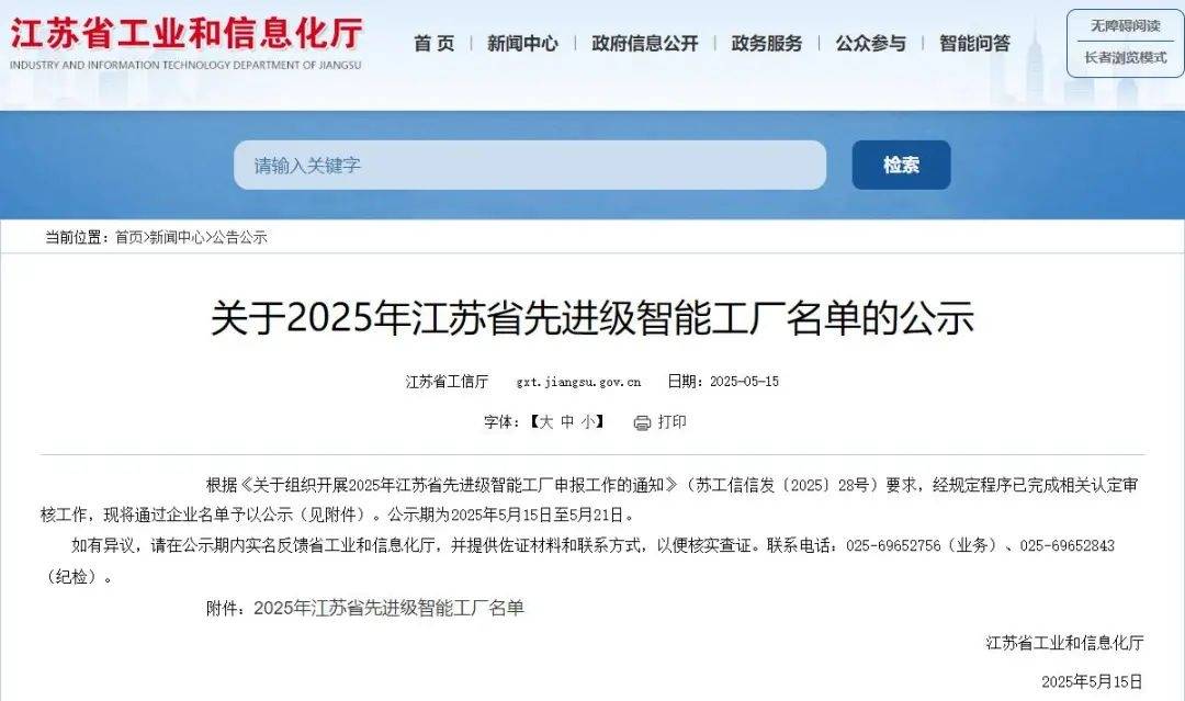 Jiangsu Provincial Department of Industry and Information Technology has announced